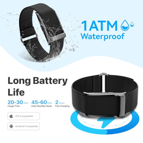 【Long Battery Life & 1ATM Waterproof】 Our minimalist halo fitness banddelivers 45-60 days of battery life and features 1ATM waterproof protection, safely enduring sweat, rain, and daily activities like handwashing.