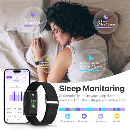【Smart Sleep Tracker & Stress Management】Your 24/7 sleep guardian analyzes every sleep stage (deep/light/REM/awake) and daytime naps, providing personalized reports with actionable tips. When stress strikes, guided breathing exercises and smart alerts help you recharge.